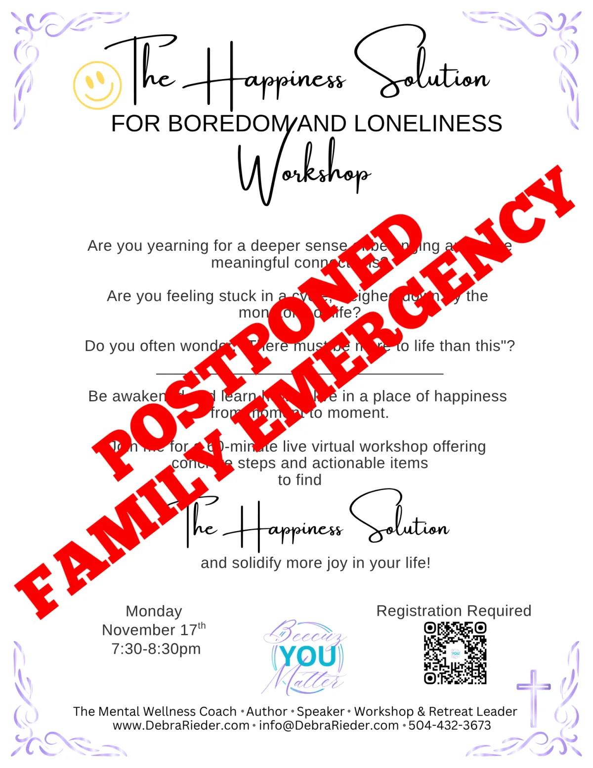 I've been a certified Tony Robbins/Chloe Madanes coach since 2013. Additionally, I am a speaker, author, and workshop/retreat leader. However, when someone is emotionally hurting, my titles don't matter. What truly matters is the transformation we can achieve together because I understand how to overcome pain and heartache and put you on the path to peace and healing.